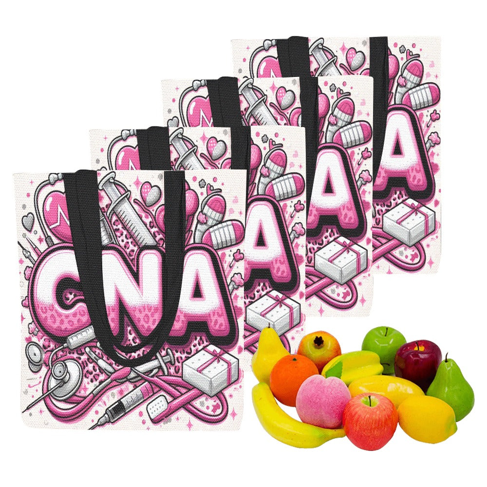 Pink and White CNA Canvas Tote Bags (Set of 4)