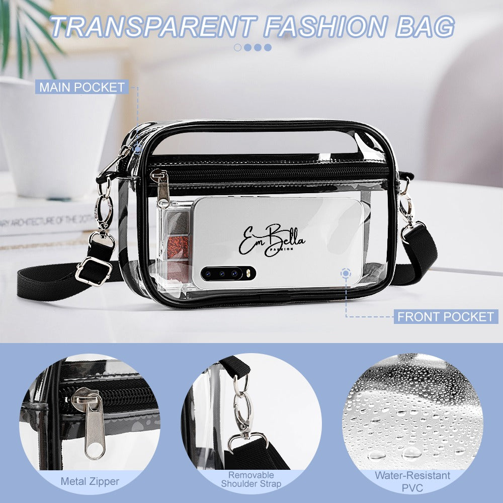 Beautiful appearance: Made of high-quality PVC material, transparent and fashionable, leading the fashion. Intimate design: The elastic shoulder strap design protects your shoulders, and the strong shoulder strap is also very durable. Ingenious craftsmanship: Fine sewing technology, reflecting the ingenuity of details everywhere. Simple design: The simple and atmospheric design allows you to match any outfit.